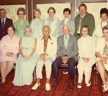 Back: Laurence Shafer, Anna Faye Herron, Mable Anderson Baugher, Doris Hampton Doehring, Virginia Morrison Rose, Paul Ellis and Ruth Ramsey