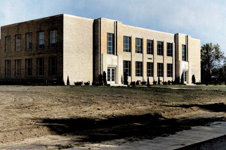 The school was bulld with a grant of $53,181 dollars from the Public Works Admistration and a loan of $65,000 for a total cost of $118,818 The building was deciated 24 November 1936 with a basketball game against Sullivan. Joe Hampton and his sister Doris Hampton proformed a duet.